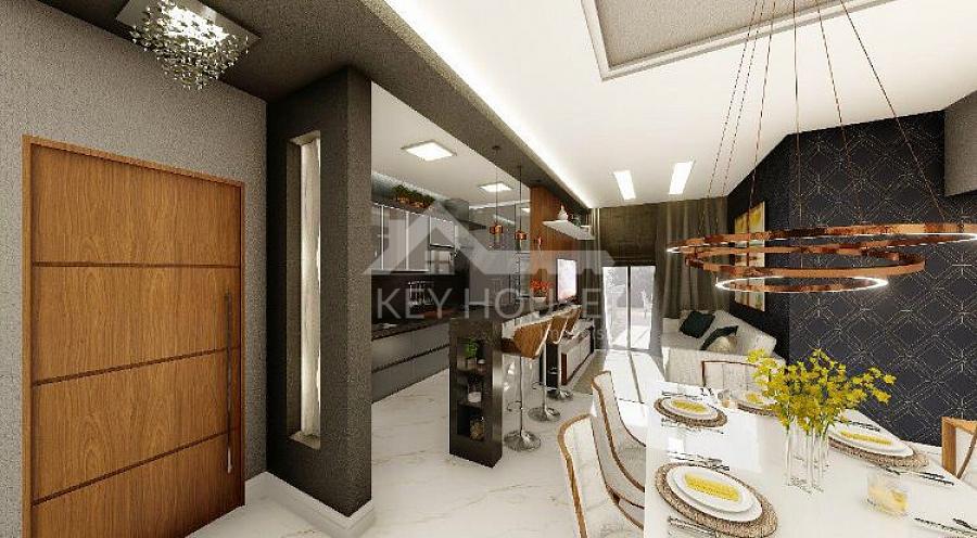 03 dormitórios 1 suíte com closet, salas amplas para  2 ambientes, sacada gourmet com pia e churrasqueira, banheiro social. Cozinha  e lavanderia conjugadas, escada com acesso à varanda gourmet, terraço.