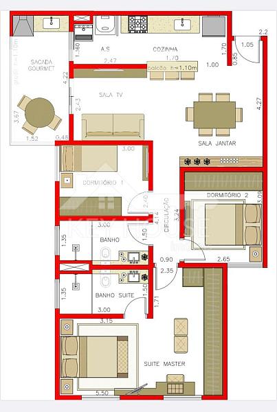 3 dormitórios (1 suíte)