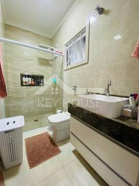 Além do banheiro da suíte, a casa possui mais dois banheiros, todos equipados com os mesmos armários planejados, gabinetes e blindex, proporcionando praticidade e um toque de sofisticação. Não há preocupações com a falta de espaço de armazenamento, pois a casa também oferece amplos armários planejados em várias áreas, permitindo que você mantenha sua casa organizada e livre de desordem.