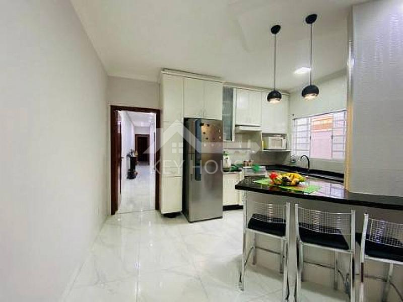 Ao entrar nesta casa, você será recebido por uma sala espaçosa que se abre para uma cozinha igualmente ampla. Esta área é o coração da casa, proporcionando um ambiente acolhedor e convidativo para encontros familiares e jantares com amigos. Os detalhes de design não passam despercebidos, com móveis planejados que não apenas otimizam o espaço, mas também acrescentam um toque moderno à decoração.